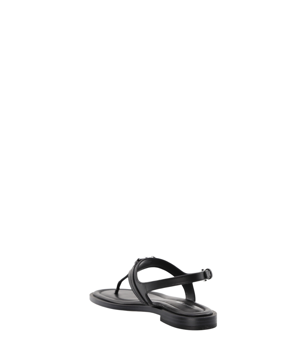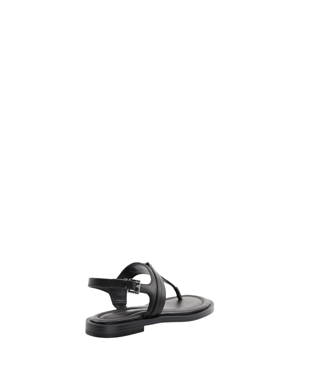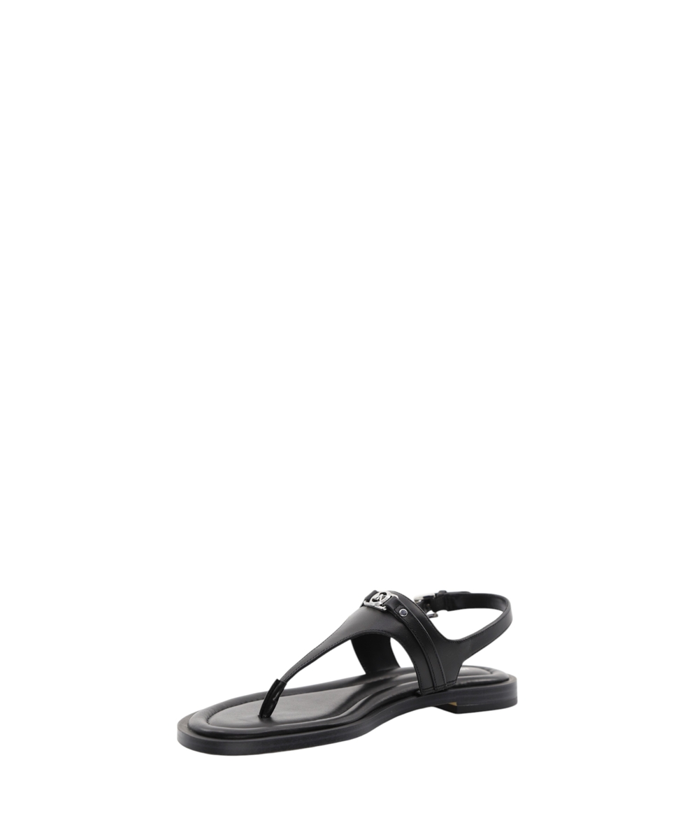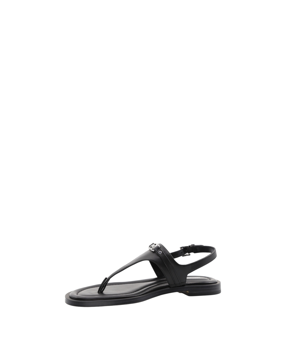 Experience refined summer elegance with the Mandy T-Strap Sandal by Michael Kors. Crafted from smooth leather, these sandals present an elegant T-shaped silhouette perfect for sophisticated warm-weather ensembles. They feature a comfortable contoured flat sole and secure buckle fastening at the ankle for a true-to-size fit. The open, rounded toe design ensures breathability, while subtle logo detailing, including printed and applied elements alongside a metallic MK monogram, adds a touch of signature appeal. These sandals are a versatile and essential addition, blending timeless design with everyday comfort.