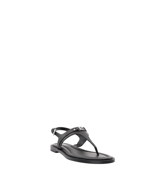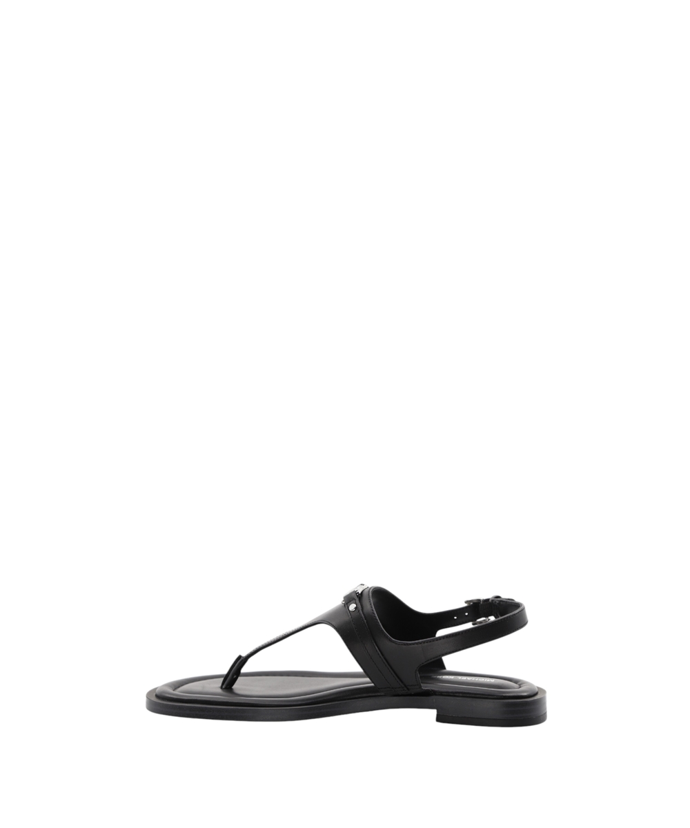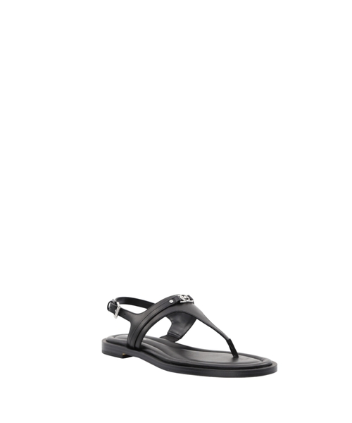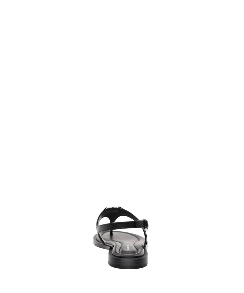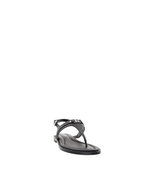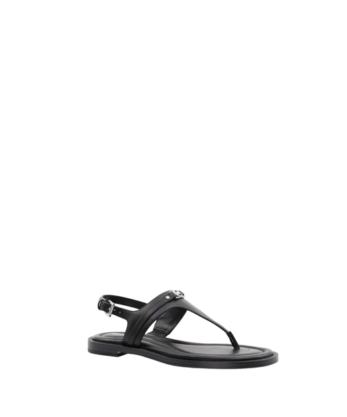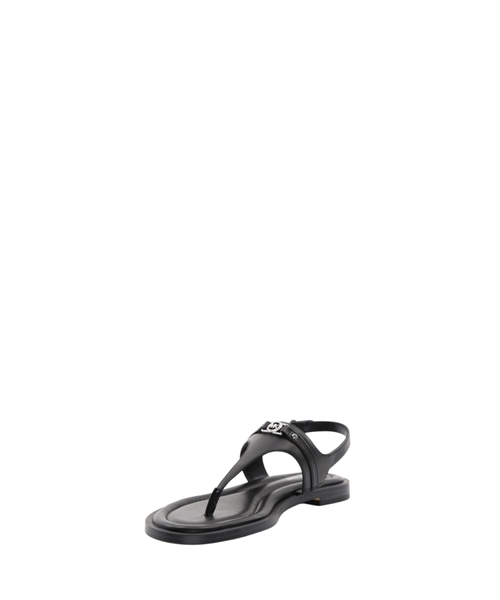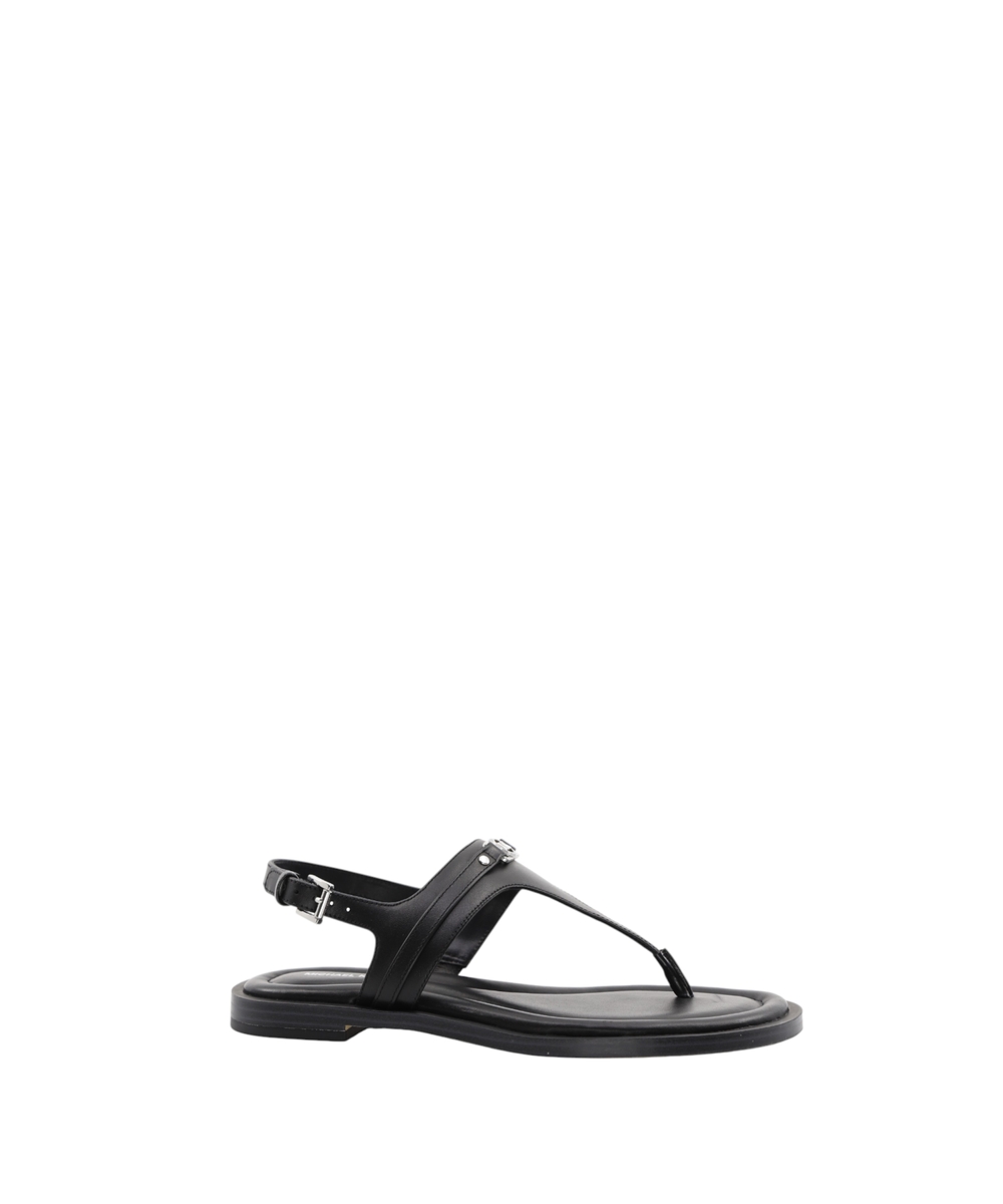 Experience refined summer elegance with the Mandy T-Strap Sandal by Michael Kors. Crafted from smooth leather, these sandals present an elegant T-shaped silhouette perfect for sophisticated warm-weather ensembles. They feature a comfortable contoured flat sole and secure buckle fastening at the ankle for a true-to-size fit. The open, rounded toe design ensures breathability, while subtle logo detailing, including printed and applied elements alongside a metallic MK monogram, adds a touch of signature appeal. These sandals are a versatile and essential addition, blending timeless design with everyday comfort.