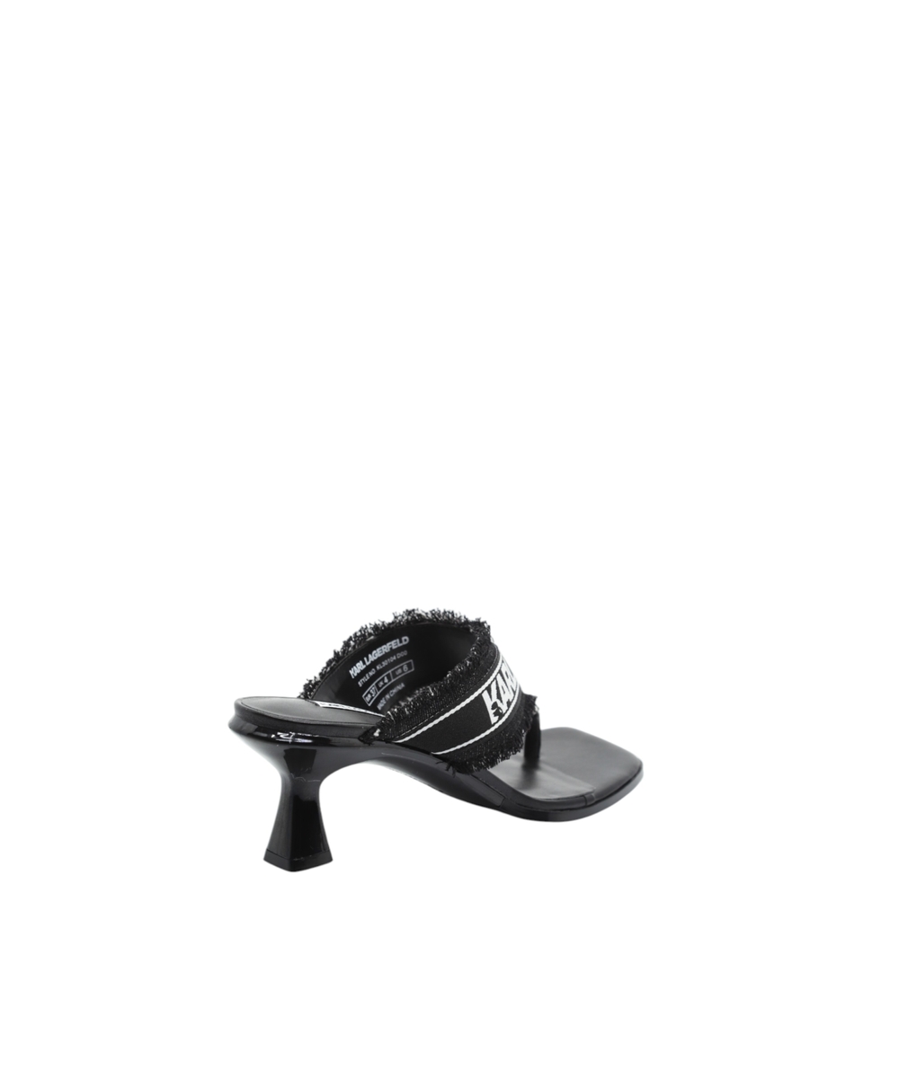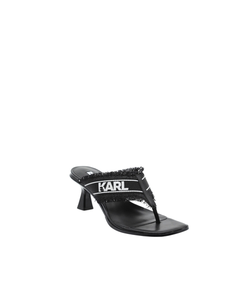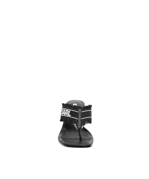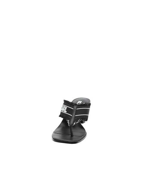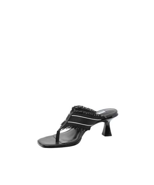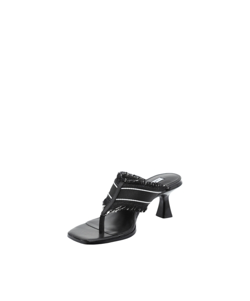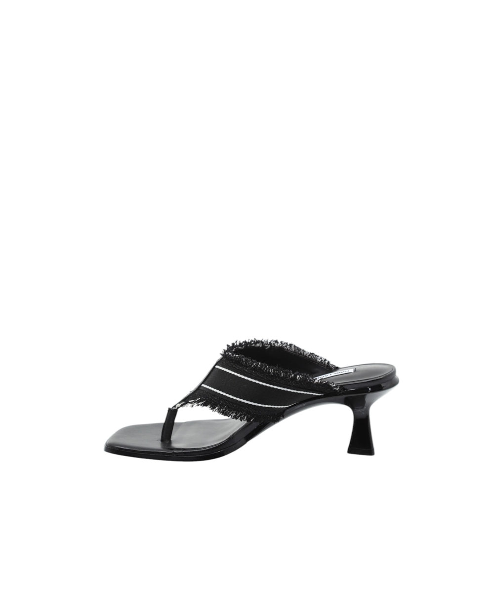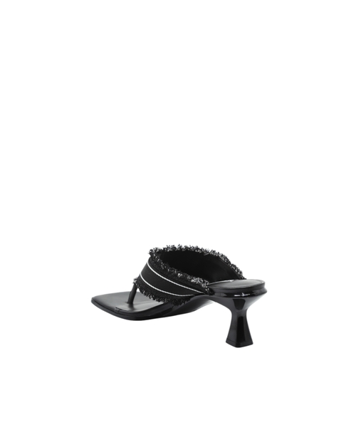 The logo-detailed strap and frayed edges add a unique touch, while the open-toe design and sleek heel structure ensure both comfort and sophistication. A versatile choice perfect for transitioning from day to night.